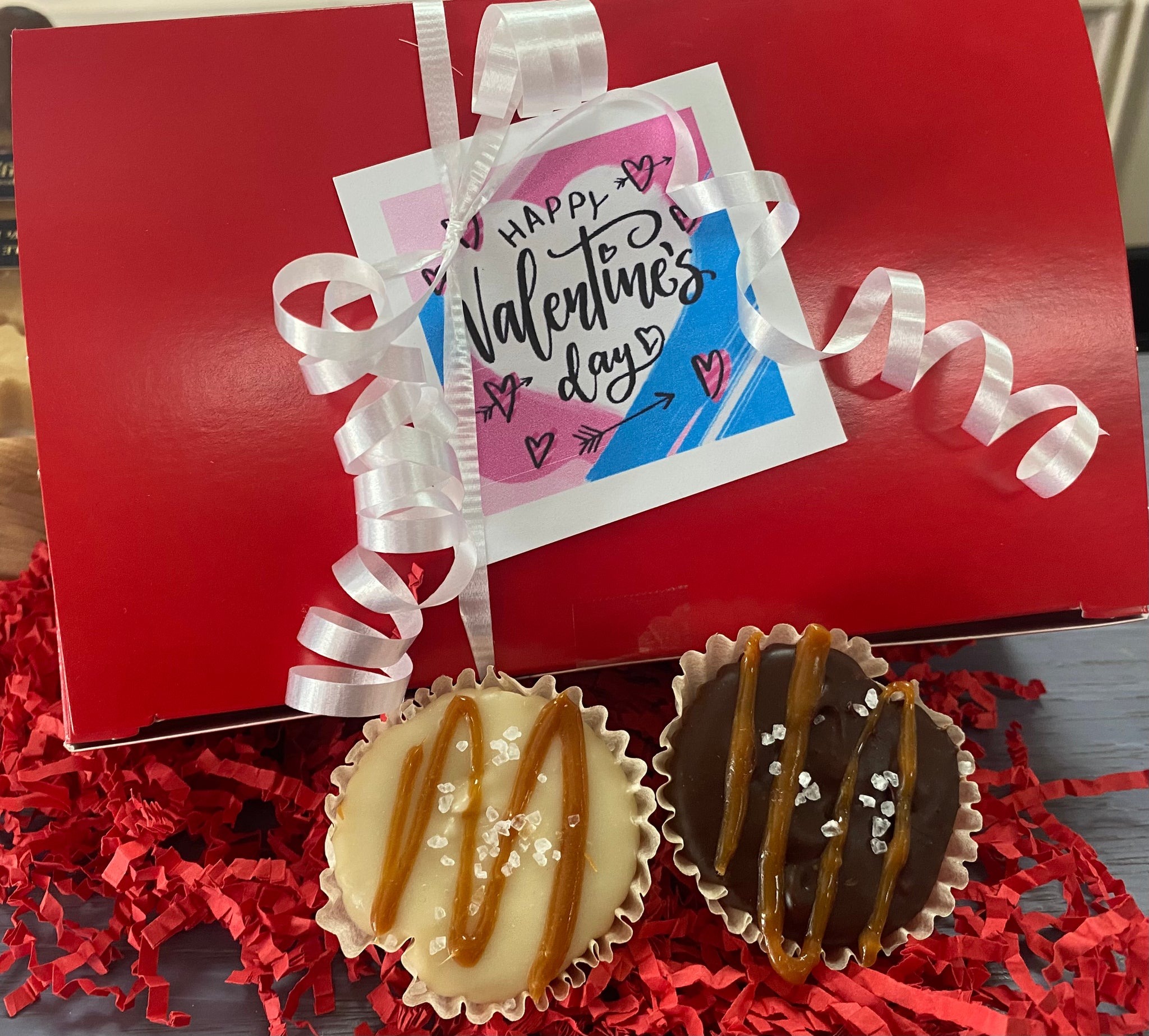 Valentine orders are boxed with ribbon and a card. Leave a message of 10 words or fewer in the notes section of your order, and we’ll print a personal card for you.