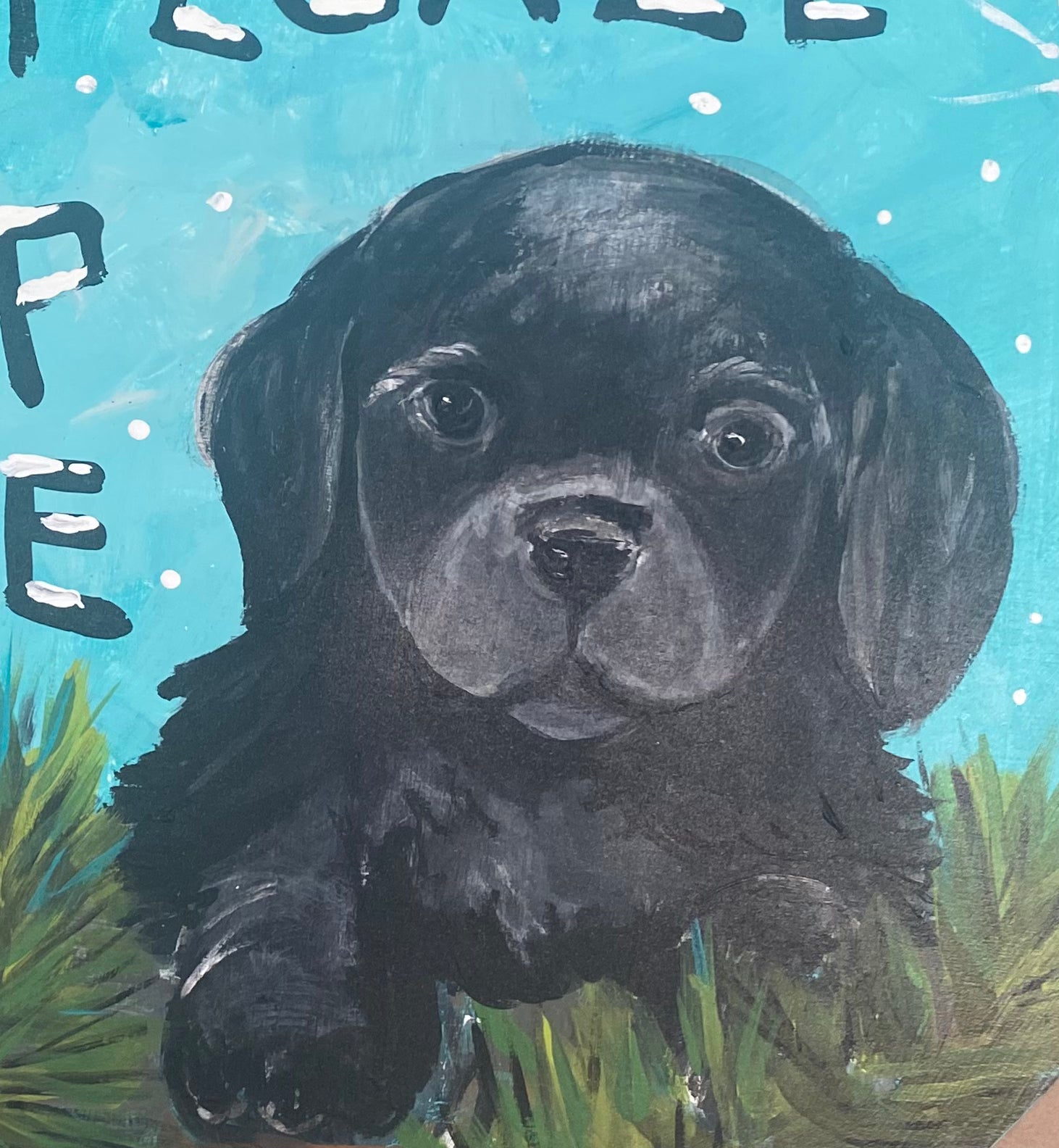 So cute! Original Merrill Mischief acrylic on wood painting. 12" round.